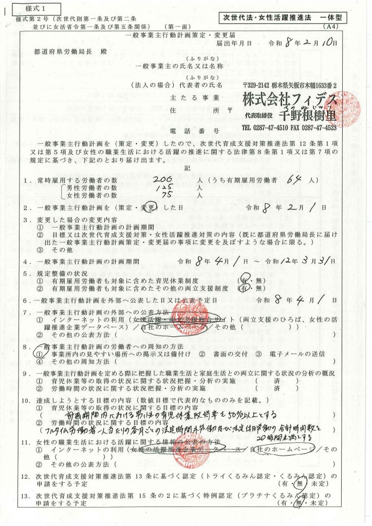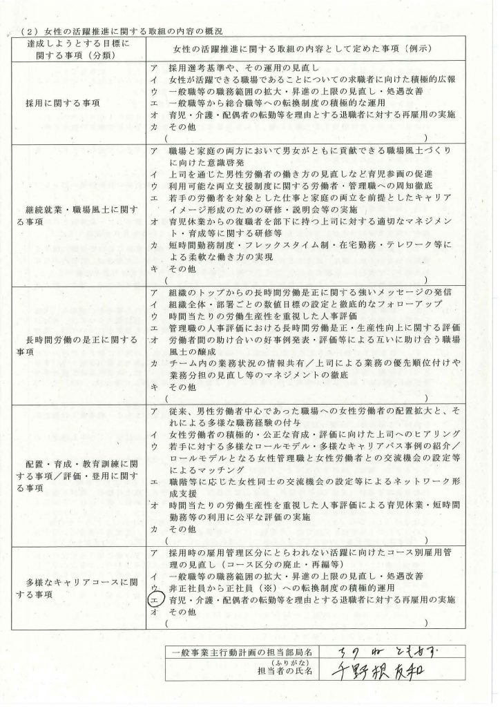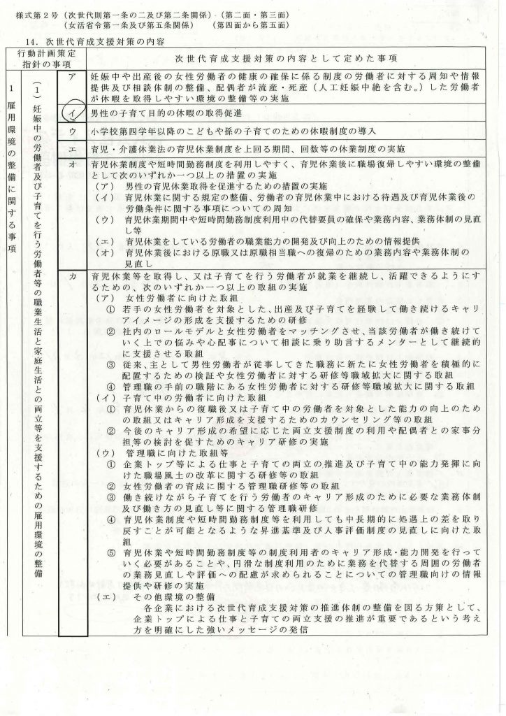 - 令和8年度一般事業主行動計画及び女性の活躍推進企業データベースを、次世代育成支援対策推進法及び女性の職業生活における活躍の推進に関する法律に基づき公開します。